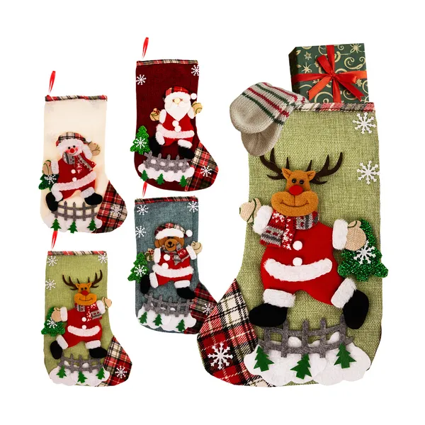 • Karácsonyi díszzokni szett 4 db, 3D motívumokkal, 19×31 cm, akasztófüllel