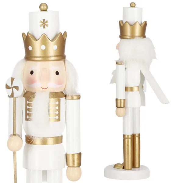 • Karácsonyi diótörő dísz, fa, 30 cm, fehér-arany