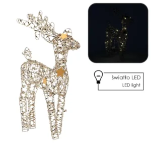 A 50 cm-es, pezsgőarany LED rénszarvas meleg fehér fénye azonnal ünnepi csillogást varázsol otthonodba. Energiatakarékos, stabil kialakítása beltéren és védett kültéren egyaránt hangulatos díszítőelemmé teszi.