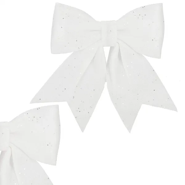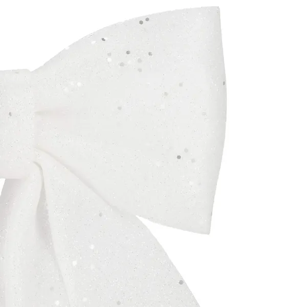 Springos fehér csillámos dekoratív karácsonyi masni dróttal 17×20 cm