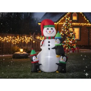 Varázsold ünnepi meseországgá otthonodat vagy üzletedet ezzel az óriási, 190 cm magas felfújható hóemberrel és két bájos pingvinnel! A beépített 3 fehér és 2 színes LED késő estig ragyogó, energiatakarékos fényt biztosít, amely minden pillantást magára vonz.