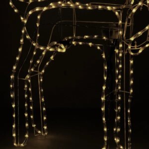 Varázsolj ünnepi hangulatot kertedbe vagy nappalidba ezzel a lenyűgöző, világító rénszarvas figurával! A masszív fémből készült, porfestett vázon 288 energiatakarékos, meleg fehér LED ragyog, amelyek 12 méter hosszan futnak végig a kontúrok mentén. A fej 45°-ban mozgatható, így a dekoráció élethűbbé válik, miközben IP44-es védelemmel bír, ezért esőben és hóban is nyugodtan használhatod.