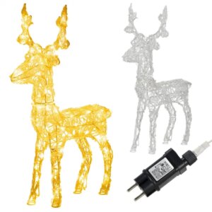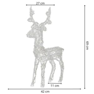 A 69 cm magas, hideg fehér fényű, 100 LED-es rénszarvas dekorációval egyetlen pillanat alatt ünnepi hangulatot teremthet nappalijában, kertjében vagy kirakatában. A letisztult dizájn és az energiatakarékos LED-technológia ideális választássá teszi a modern karácsonyi díszítéshez.