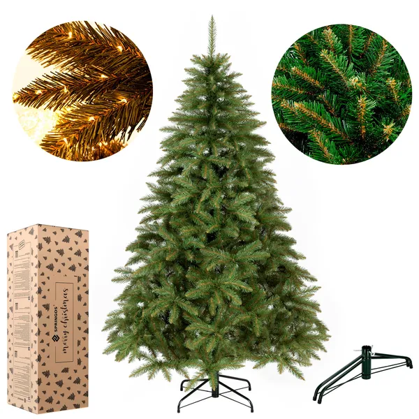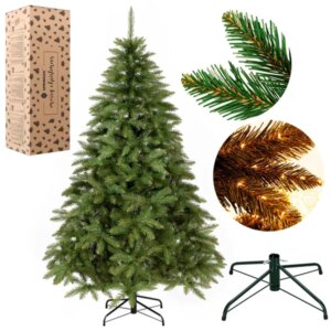 Dús, kétszínű PVC ágai valósághű megjelenést biztosítanak, a masszív fém talp stabil tartást nyújt. Gyorsan összeszerelhető, így évekig élvezheti a gondozásmentes ünnepi hangulatot.