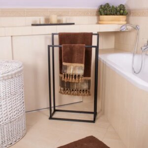 • Fém szabadon álló törölközőtartó, 3 rúd, 84×45×21,5 cm, max 6 kg