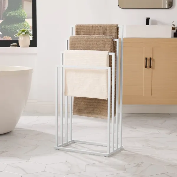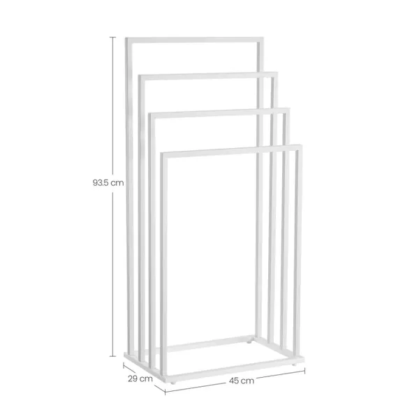 Szabadonálló fehér törölközőtartó 4 rúddal, acél, 45×29×93 cm