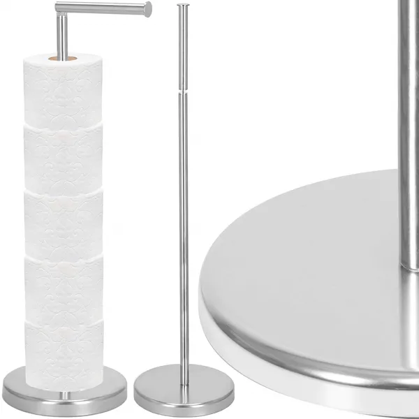 • Fémlábú WC-papír tartó állvány, ezüst, 83 cm, félmatt