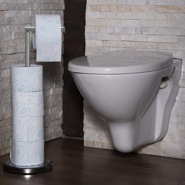 A félmatt ezüst színű, stabil fémből készült WC-papír tartó állvány mozgatható karral biztosítja a papír kényelmes elérését. Gyorsan összeszerelhető talpa rendezetten tartja a fürdőszobát.