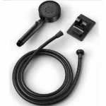 Válts 5 különböző vízsugár között a magasnyomású, matt fekete kézizuhannyal, és élvezd a 150 cm-es flexibilis tömlő nyújtotta mozgásszabadságot fúrásmentes falitartóval.