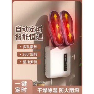 A fali cipőszárító 140 W-os meleg levegővel villámgyorsan eltávolítja a nedvességet, szagokat és baktériumokat, miközben megóvja cipőid anyagát. Ragasszd fel fúrás nélkül, állítsd be az 1-3 órás időzítőt, és élvezd a száraz, friss lábbeliket bármikor, így hosszabbítva a cipők élettartamát tovább.