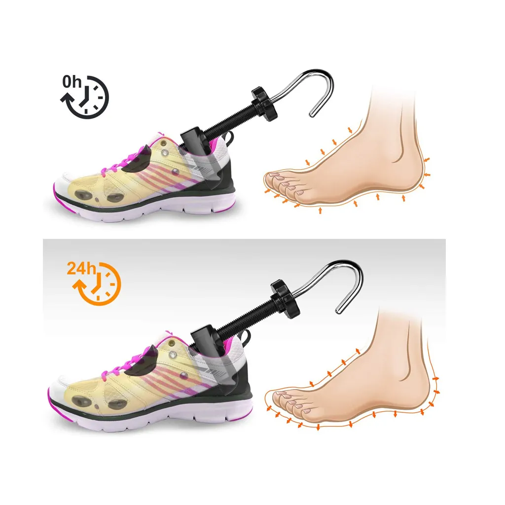 A cipőfeszítő eszköz segít a túl szoros és szorító cipők nyújtásában és beállításában. A hatás nem invazív és nem deformálja a cipőt. Használható sportcipőkhöz, tűsarkú cipőkhöz vagy papucsokhoz.