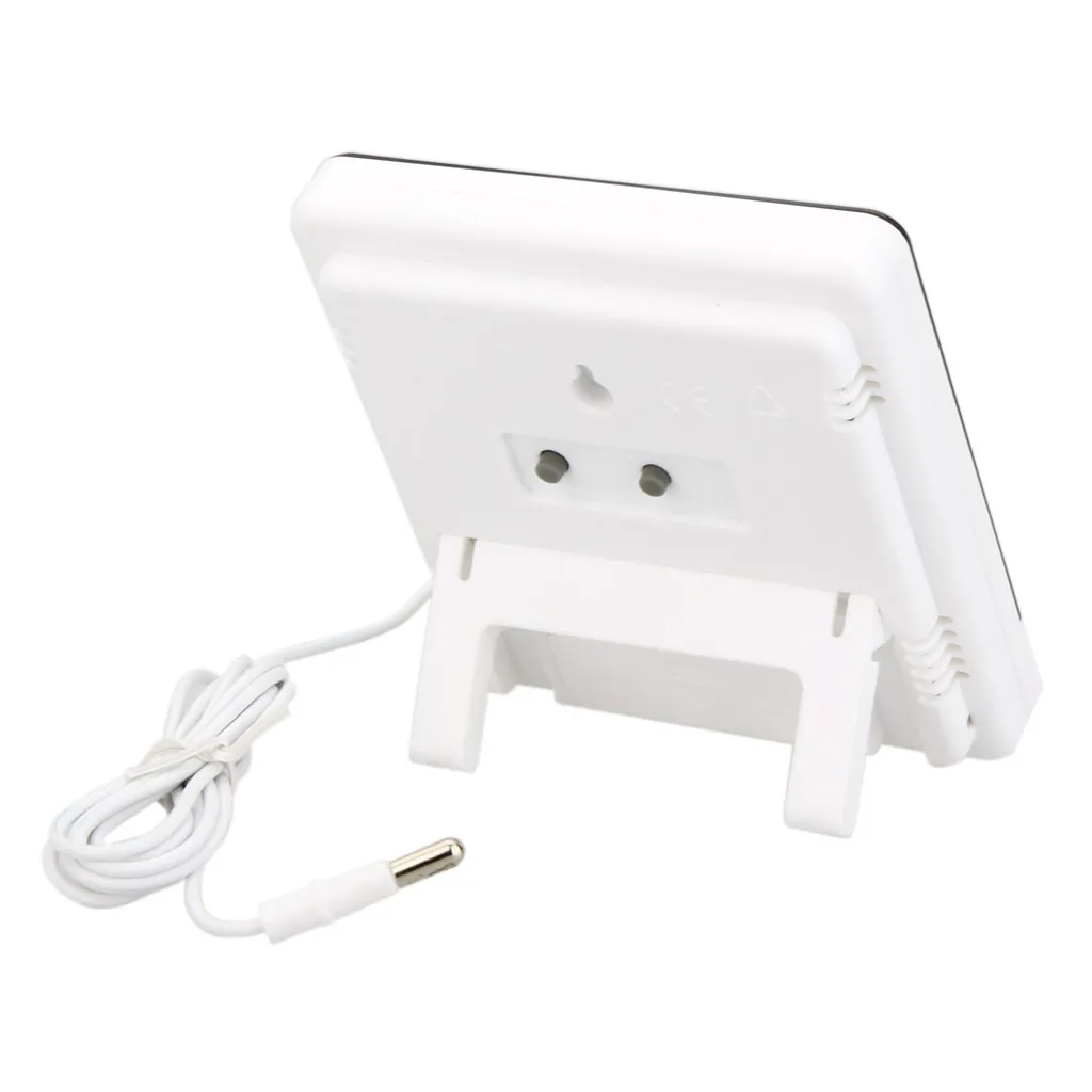 ELEKTRONIKUS LCD HŐMÉRŐ BELSŐ ÉS KÜLSŐ HŐMÉRSÉKLET ÉS PÁRATARTALOM MÉRÉSSEL, ÓRÁVAL, DÁTUMMAL ÉS RIASZTÁSSAL