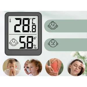 Az LCD kijelzős mini eszköz másodpercek alatt megmutatja a helyiség hőmérsékletét és páratartalmát, mosolygós ikonokkal jelezve a komfortszintet. Mágneses hátlapja és elemes tápellátása révén bárhová könnyedén felhelyezhető és azonnal használatra kész.