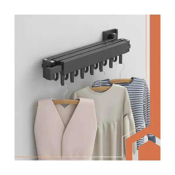 Falra szerelhető, alumínium ruhaszárító 18 akasztóval, amely kihúzható karjainak és összecsukható kialakításának köszönhetően jelentős helyet szabadít fel, miközben stabil tartást biztosít a frissen mosott ruhák számára.