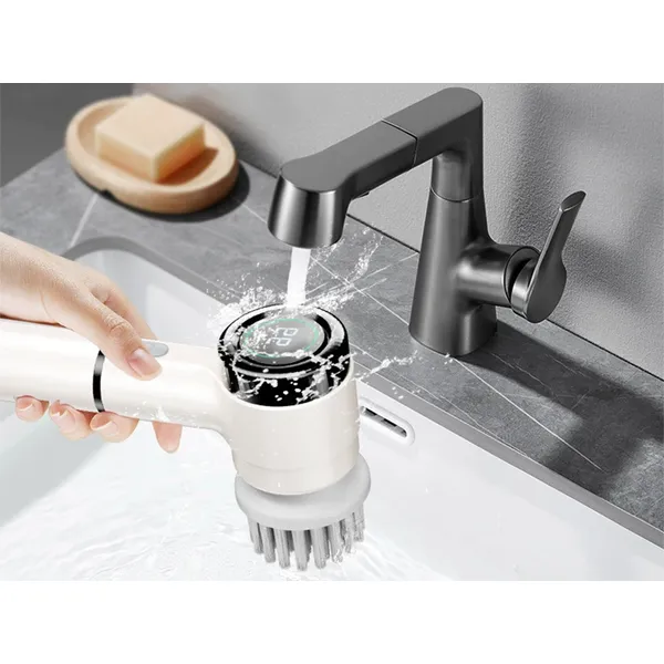 Akkumulátoros 5 az 1-ben forgó tisztítókefe LCD kijelzővel konyhába, fürdőbe