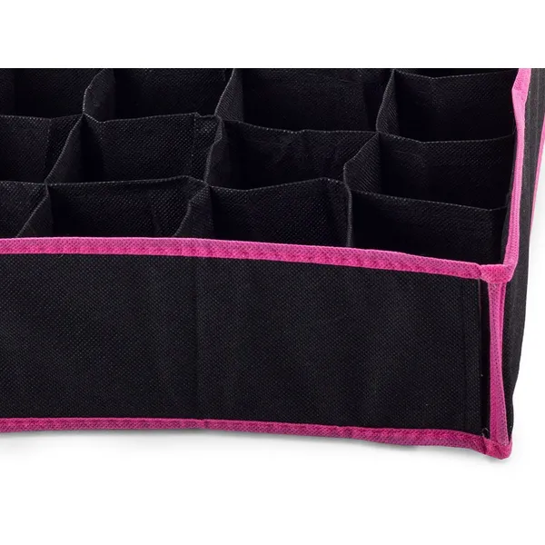Fehérnemű- és zoknirendező fiókbetét, 16 rekesz, fekete, 35×28×10 cm