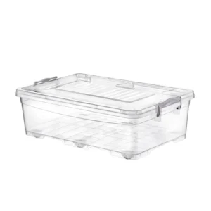 A 30 literes, téglalap alakú műanyag tárolódoboz praktikus megoldást kínál otthoni és irodai rendszerezéshez. Átlátszó falainak köszönhetően egy pillantással látható a tartalma, a négy strapabíró kerék pedig könnyed mozgatást tesz lehetővé még megtöltve is.
