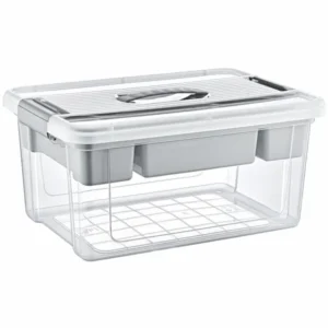 A Stormax 16 literes műanyag doboz ideális választás kisebb szerszámok, játékok, hobbikellékek vagy konyhai alapanyagok átlátható tárolásához. Kompakt mérete (29,2×41,3×20,2 cm) révén elfér polcon, szekrényben vagy az autó csomagtartójában, mégis elegendő helyet biztosít a mindennapi holmiknak.