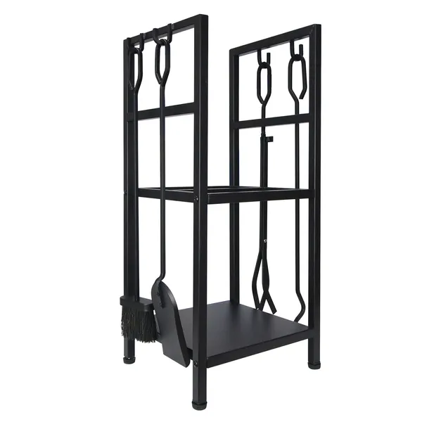 Rendezze egy helyen a tűzifát és a kandallóeszközöket: a masszív, 80 kg-ig terhelhető acél állvány két polca bőséges helyet kínál, a négy mellékelt szerszám pedig megkönnyíti a tűzrakást. Beltéren és kültéren is elegáns megjelenést és rendet biztosít.