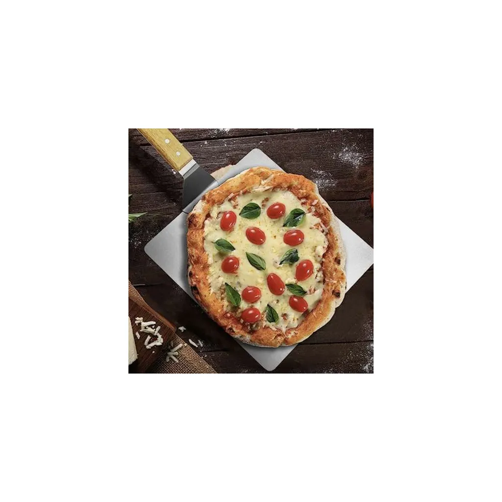 A pizza lapátot nem csak pizzához használhatod, hanem sütemények, kenyerék, piték vagy más ételek fordításához és szállításához is, amelyek biztonságos kezelést igényelnek. Ennek az eszköznek köszönhetően sokféle helyzetben használhatod a konyhában.