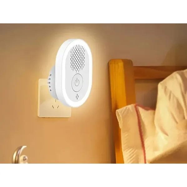 Vegyszermentes, ultrahangos riasztó, amely hangtalanul tartja távol a rágcsálókat és rovarokat, miközben beépített LED-lámpája kellemes éjjeli fényt ad.