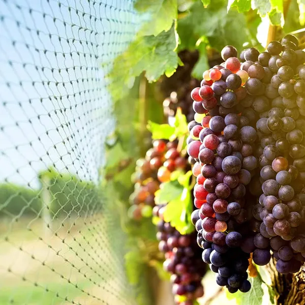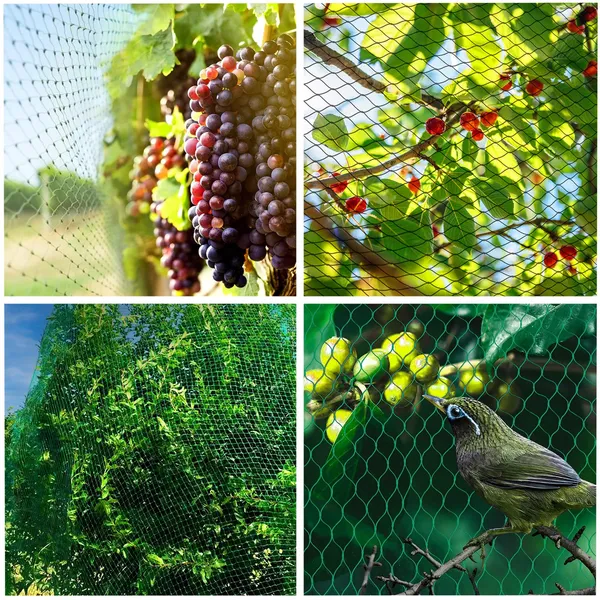 Könnyű, UV-álló madárháló 160 m² területtel, amely sűrű szövése révén hatékonyan távol tartja a madarakat, mégis biztosítja a növények szellőzését és fényellátását.