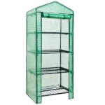 Masszív acélvázas, UV-álló fóliával borított mini üvegház, amely négy, egyenként 10 kg-os polcán rendszerezetten neveli palántáidat, miközben cipzáras ajtaja feltekerhető a gyors szellőzéshez és a kényelmes hozzáféréshez.
