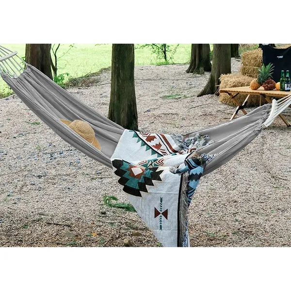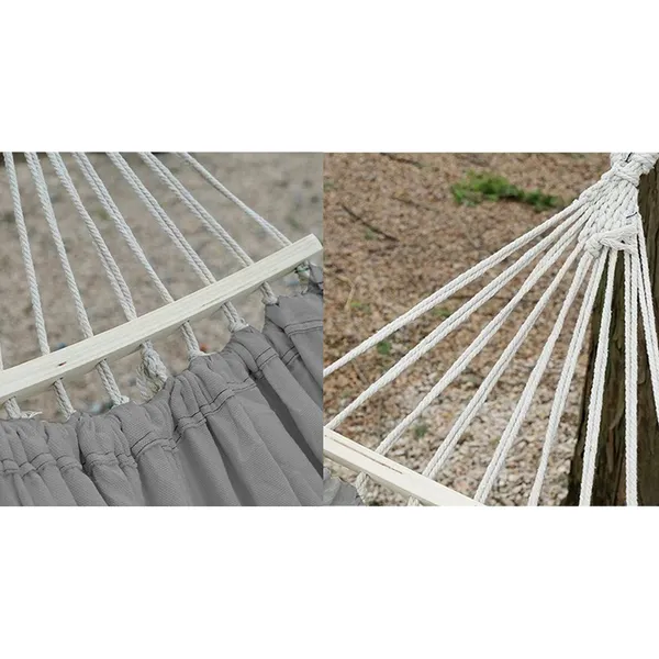 • Springos kétszemélyes pamut-poliészter függőágy, szürke-krém, 150×200 cm