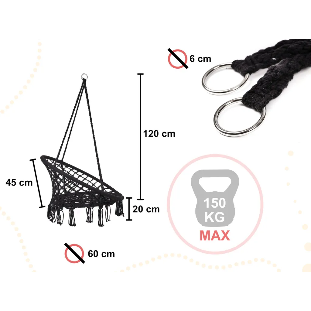 Fészekhinta párnázott háttámlával, fekete, 80cm