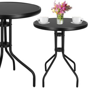 Springos kerti asztal, kerek 60 cm, fekete, edzett üveg/fém