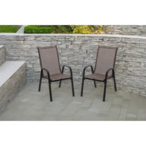 Élvezze a nyári pihenést a teraszon vagy a kertben ezzel a strapabíró, mégis könnyű, 2 darabos kerti székszettel. A porfestett acél váz stabilitást és rozsdaállóságot biztosít, míg a barna Textilene 2×1 szövet kényelmes támaszt nyújt és gyorsan szárad. A letisztult dizájn bármely kültéri stílushoz illeszkedik, az ülőalkalmatosságok pedig egymásba rakhatók a könnyű tárolás érdekében.