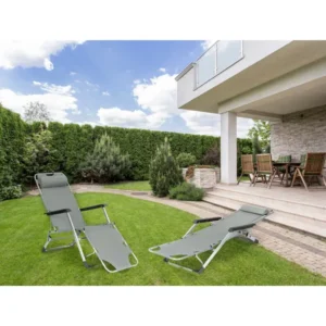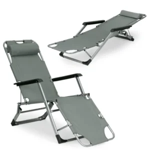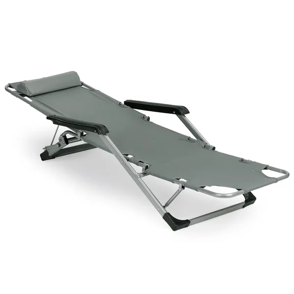 Összecsukható 2-az-1-ben kerti-strand szürke napozóágy 150 kg-ig MultiGarden