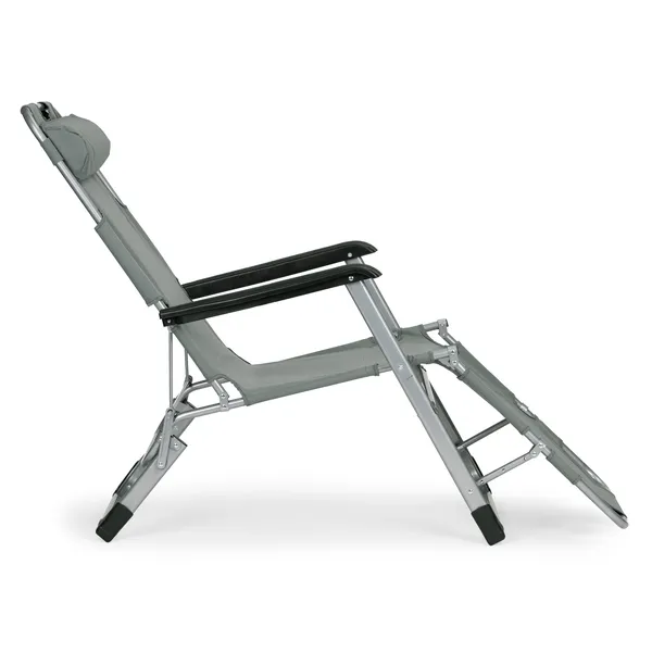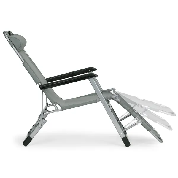 A MultiGarden 2-az-1-ben szék és napozóágy ideális társ a kertben, a teraszon vagy a strandon. Masszív fémszerkezete akár 150 kg terhelést is elbír, a vízálló szövet pedig ellenáll a napnak és a fröccsenő víznek. A fejpárna, a 3 fokozatban állítható lábtartó és a kényelmes kartámasz gondoskodik a teljes ellazulásról.