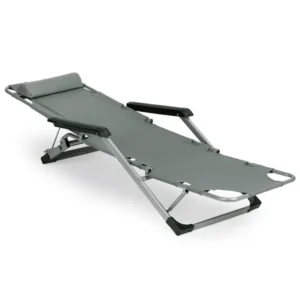 Az állítható fejpárna és 3 fokozatú lábtartó személyre szabott kényelmet kínál, míg az összecsukható, vízálló fémszerkezetű napozóágy könnyen hordozható és akár 150 kg-ot is elbír.