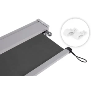 További alkatrészekkel és rugalmas pántokkal az árnyékoló alsó szélén rögzítheti a kitekert árnyékoló végeit a falhoz. Ez a funkció biztosítja a stabilitást, különösen szeles időben. A megfelelően rögzített és feszes árnyékoló a falhoz tapad, ellenáll az erős széllökéseknek és minimalizálja a károsodás kockázatát.
