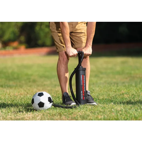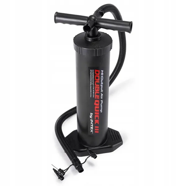 Kétirányú levegőáramlásának köszönhetően a 48 cm-es Intex pumpával feleannyi idő alatt fújhatsz fel matracot, csónakot vagy labdát, miközben a csúszásmentes talp és a három univerzális fúvóka kényelmes, stabil használatot biztosít.