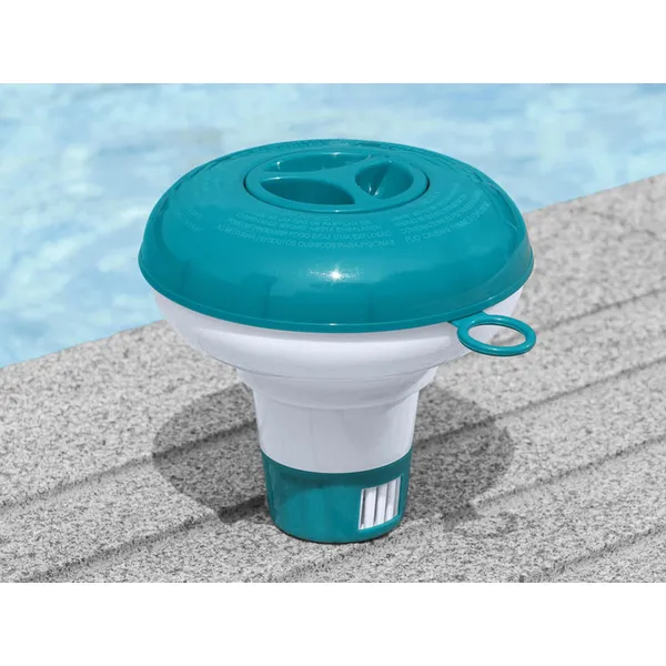 A Bestway BA0075 úszó vegyszeradagoló egyszerű és biztonságos megoldást kínál a klór- vagy egyéb fertőtlenítő tabletták vízbe juttatására, hogy a medence vize egész szezonban tiszta és higiénikus maradjon.