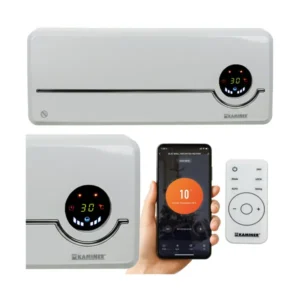 A Kaminer AIRO elektromos légfüggöny fali hősugárzó gyors, csendes és energiatakarékos megoldást kínál lakások, irodák és üzletek hatékony fűtésére. A beépített PTC kerámia fűtőelem biztonságos, egyenletes meleget biztosít, míg a WiFi-nek és a távirányítónak köszönhetően bárhonnan vezérelheted.
