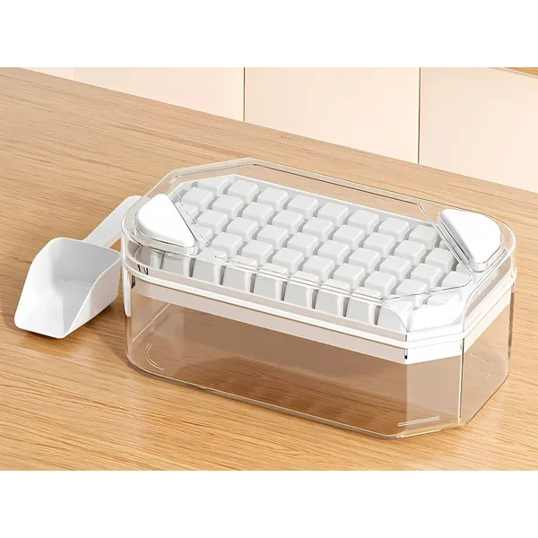 Jégkocka készítő tálca 50 kockához tartállyal, gombbal és adagolókanállal