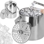 Használat egyszerűen: töltsd meg a vödröt jégkockákkal, helyezd rá a szitát és zárd le a fedelet. A csipesszel gyorsan és higiénikusan adagolhatod a jeget koktélokhoz, limonádéhoz vagy pezsgőhöz.