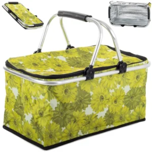 Hőszigetelt, összecsukható piknikkosár 48×28×22 cm, zöld virágos