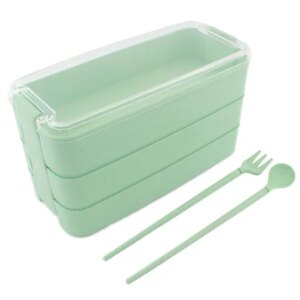 Háromkamrás ételdoboz evőeszközzel, 900ml, zöld