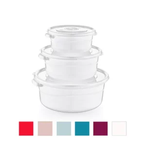 Akár otthoni előkészületekhez, akár munkahelyi ebédhez keres megbízható tárolást, a Microfresh 3 darabos kerek ételtároló készlet ideális választás. A 0,5 l, 1 l és 2 l űrtartalmú dobozok könnyen egymásba és egymásra helyezhetők, ezzel helyet takarítanak meg a szekrényben és a hűtőben.