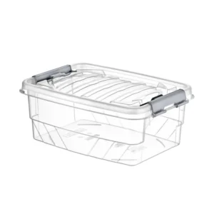 A 5 literes, téglalap alakú műanyag tárolódoboz segítségével könnyedén rendben tarthatja otthonát vagy munkahelyét. Átlátszó falai révén első pillantásra látható a tartalma, a masszív, pattintható fedél pedig megóvja a dobozban lévő dolgokat a portól és a nedvességtől.