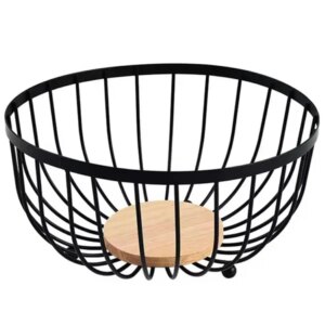 • Fém kosár gyümölcsök és zöldségek tárolására. Erős fém szerkezet garantálja a hosszú és problémamentes használatot. A tál három lábon áll, széles alapon, ami magas stabilitást biztosít. A fekete szín tökéletesen illeszkedik bármilyen belső térbe, és nem vonja el túlzottan a figyelmet.