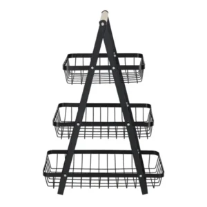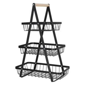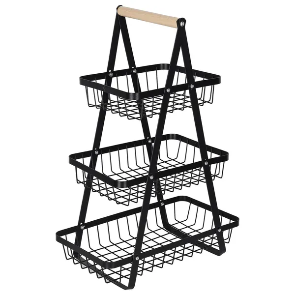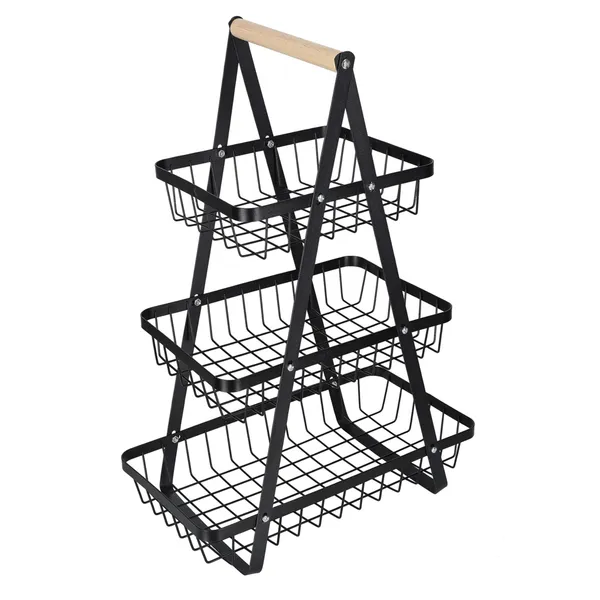 A háromszintes, fém–fa állvány látványosan rendszerezi gyümölcsét és zöldségét, miközben mindössze 34×17,5 cm alapterületet igényel, így több hely marad a pulton és stílusos kiegészítőként is szolgál. Szellőző dróthálós kosarai frissebben tartják a terményeket, a mellékelt csavarhúzóval pedig percek alatt, szerszám nélkül összeszerelhető.