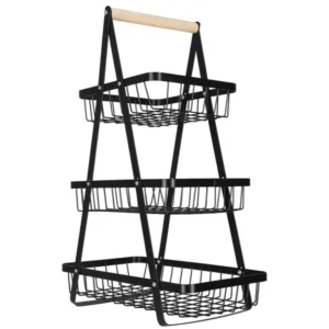 Hozzon rendet és stílust a konyhába ezzel az ipari hangulatú, fekete fém-fa, háromszintes gyümölcs- és zöldségkosárral!