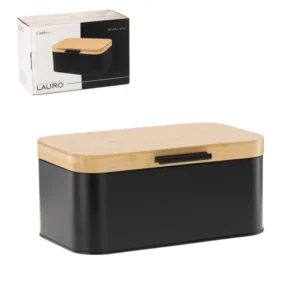Lauro fém kenyértartó bambusz fedéllel – fekete