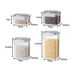 A szilikon tömítésű fedelek légmentesen zárnak, távol tartják a nedvességet és megőrzik a tészta, rizs, kávé frissességét. A hét különböző méretű, egymásra rakható, átlátszó dobozzal egyszerűen rendszerezheti kamráját, azonnal láthatja a tartalmat, és értékes helyet takaríthat meg konyhai polcain is.