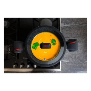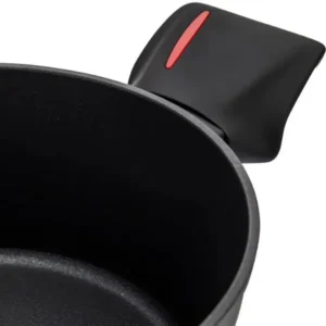• Ergonomikus hőálló fogantyú – Kényelmes és biztonságos fogásra tervezve, az ergonomikus fogantyú főzés közben hűvös marad, biztosítva a biztonságos fogást és könnyű kezelhetőséget, miközben megvédi a kezeket a hőtől.